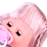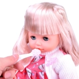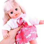 Deze pop met lange blonde haren en een schattige roze outfit heeft een zacht lijfje, ideaal om te knuffelen. Wanneer ze wordt neergelegd, sluit ze haar ogen, wat het spel extra realistisch maakt. Met de meegeleverde accessoires ontwikkelen kinderen fijne motoriek, empathie en verbeeldingskracht.