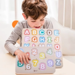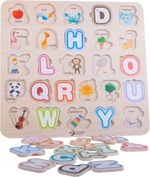 Dit hoogwaardige houten alfabet met afmeting 30 × 30 cm ondersteunt de eerste stapjes richting lezen en schrijven. Kinderen plaatsen de kleurrijke, uitneembare stukjes in de corresponderende vormen en trainen zo oog-handcoördinatie en ruimtelijk inzicht. Dankzij de afbeeldingen onder de letters maken ze spelenderwijs kennis met Engelse woordjes.