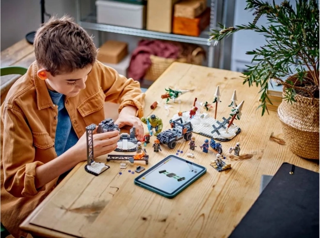Bouw en herbeleef het epische gevecht uit de film Avengers: Tijdperk van Ultron. De set bevat vijf onderling koppelbare modules die je vrij kunt ombouwen en combineren tot een spectaculaire scène. Inclusief terreinwagen met beweegbare wielen, wapens en tal van accessoires voor creatief rollenspel.