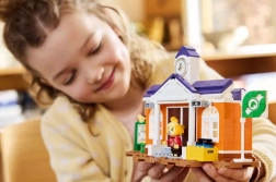 Breng iconische momenten uit ANIMAL CROSSING tot leven. Kinderen bouwen een plein met klokkentoren, café en gemeentehuis, bereiden het podium voor K.K., doen mee met een groepsstretch met Isabelle en nemen met Audie iets lekkers in het café. De wooncamper gaat open zodat K.K. kan overnachten, en de boom verbergt een verrassing – net als in de game.