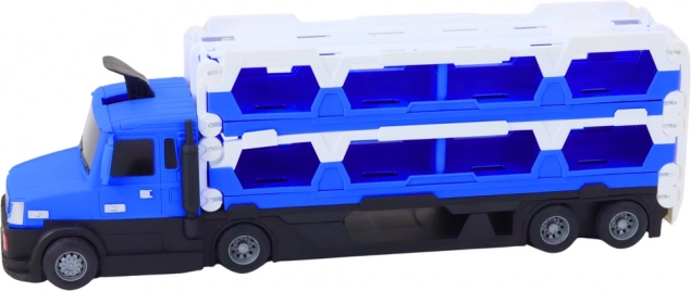 Vrachtwagen met uitschuifbare racetrack 2-in-1, licht en geluid, politieautootjes, blauw