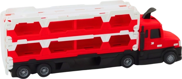 Na het openen verandert de truck in een lange racecirkel. Eenvoudig uit te klappen en snel speelklaar voor onbeperkt creatief spel.