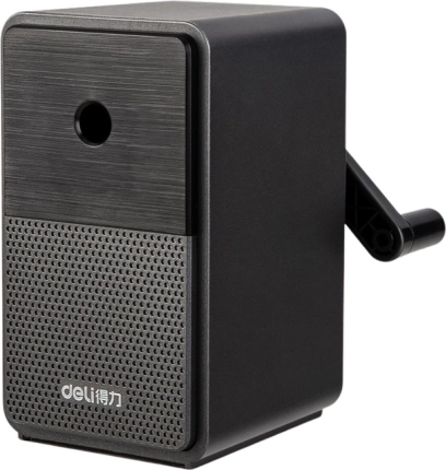 Elegante handmatige puntenslijper met zwengel in het zwart met soepele regeling van de slijping, een ruime opvangbak voor slijpsel en comfortabel gebruik thuis, op school en op kantoor. De stabiele constructie en de precieze instelling van de puntlengte zorgen altijd voor een perfect geslepen potlood of kleurpotlood.