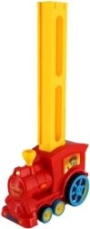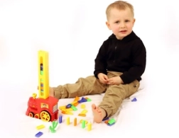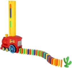 Het treintje zet tijdens het rijden zelf gekleurde steentjes in een lange rij. Kinderen genieten van een vlotte en snelle voorbereiding voor grote dominokettingen.