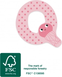 Houten letter Q met een vrolijk kwalontwerp is een ideale aanvulling voor elke kinderkamer en een leermiddel om woorden te spellen. Gemaakt van FSC-gecertificeerd hout, wat een duurzame bron garandeert.