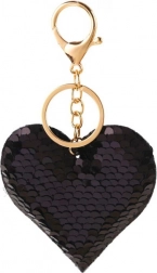 Elegante hartvormige sleutelhanger met dubbelzijdige pailletten, die direct de aandacht trekt dankzij de mogelijkheid om de kleur van zwart naar zilver te veranderen.