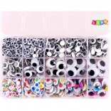 Alle oogjes zijn netjes geordend in een praktische organizer met 15 vakjes, die helpt om knutselmaterialen op orde te houden.