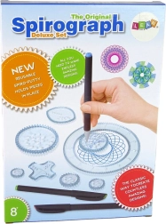Deze spirograaf voert kinderen mee in de wereld van nauwkeurige ornamenten en spiralen. Dankzij diverse kunststof sjablonen en soepel schrijvende gekleurde stiften kunnen jonge makers eenvoudig vormen en kleuren combineren en originele tekeningen creëren. Klei (spiro-putty) helpt de sjablonen op het papier te bevestigen, waardoor het tekenen stabiel is en de resultaten echt strak zijn.