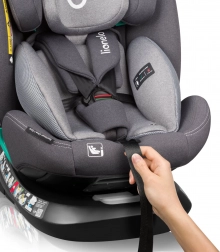 Eenvoudige installatie en dagelijks comfort – montage met ISOFIX en Top Tether met gekleurde indicatoren voor correcte bevestiging. De 360° EasyTurn draaibasis ontlast de rug van de ouder en vergemakkelijkt het vastgespen. 4 hellingsstanden in beide rijrichtingen en geïntegreerde hoogteverstelling van de hoofdsteun met gordels zorgen voor een ideale positie om te slapen en wakker te zijn.