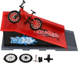 Deze set met fingerfiets en ramp brengt een compacte skatepark-ervaring rechtstreeks naar je tafel. De mini BMX met verwisselbare onderdelen is ideaal om tricks, jumps en precieze landingen te trainen. Dankzij de schroefbare delen pas je de fiets eenvoudig aan en leer je de basis van mini-onderhoud – van het wisselen van wielen tot pegs.