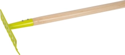 Lichte en duurzame kinderriek in een frisse groene kleur voor kleine tuiniers vanaf 3 jaar. Ergonomische houten steel, robuuste metalen kop en laag gewicht maken het harken van bladeren, gras en kleine takjes eenvoudig. Inclusief praktische ophanglus. Prijs per stuk.