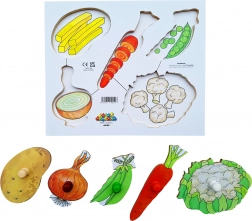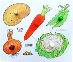Deze houten legpuzzel is ontworpen om kinderen kennis te laten maken met groenten, zowel in hun geheel als in gesneden vorm. Kinderen kunnen de stukjes gemakkelijk vastpakken en leren de juiste groenten aan hun gesneden versies te koppelen. Producteigenschappen: