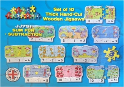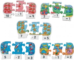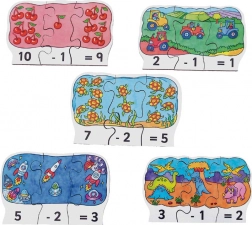 Deze aantrekkelijke en educatieve set houten puzzels is een ideaal hulpmiddel voor kinderen die op een speelse manier aftrekken willen oefenen. Elk onderdeel bevat: