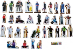 Deze set van 33 realistisch weergegeven, vrijstaande figuren toont een spectrum aan verschillende leeftijdscategorieën, geslachten, beroepen en nationaliteiten. De figuren zijn tussen 7,5 cm en 10,5 cm hoog en zijn gemaakt van MDF-plaat met een dikte van 1,5 cm.