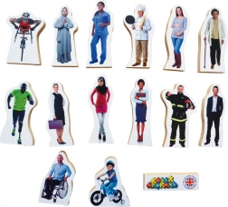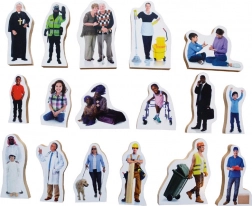 Houten figuren Mensen om ons heen zijn een prachtig educatief hulpmiddel dat kinderen helpt verschillende beroepen, nationaliteiten en menselijke rollen in onze rijke cultuur beter te herkennen.