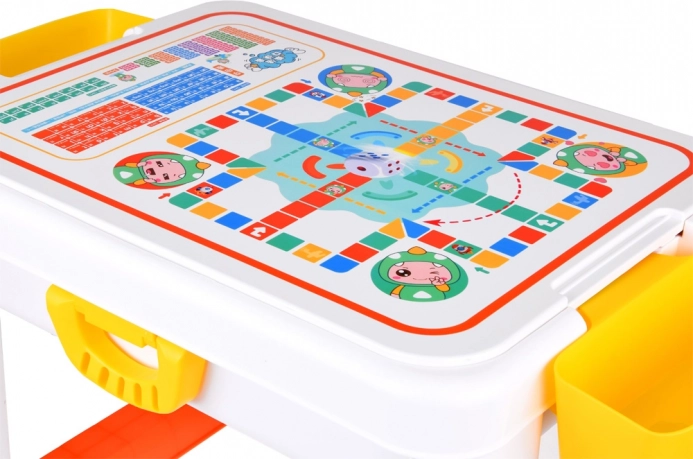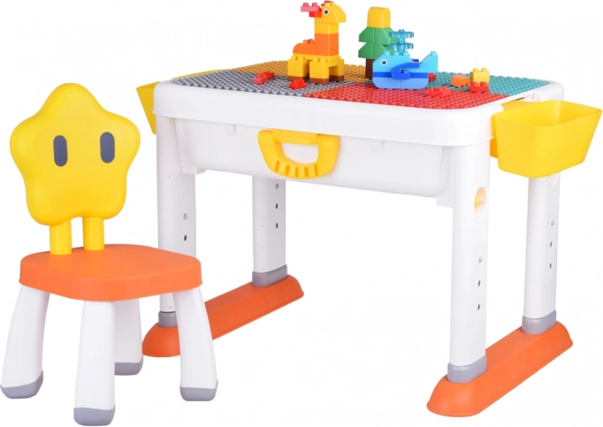 Multifunctionele 3‑in‑1 kindertafel met in hoogte verstelbare poten, een dubbelzijdig blad voor bouwsteentjes en schrijven, en praktische opbergruimte. In de set zit ook een comfortabele stoel met... Meer tonen