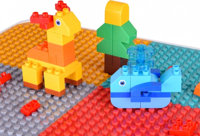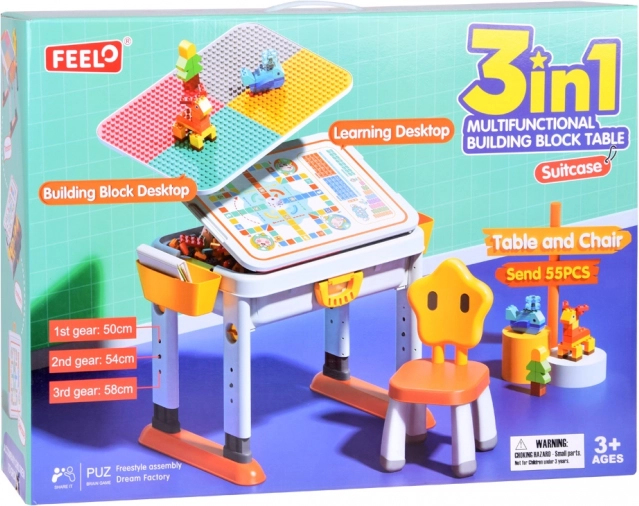 Verstelbare 3‑in‑1 kindertafel met dubbelzijdig blad en bouwstenen