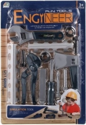 De set bevat ongeveer 13 stuks gereedschap zoals een sleutel, tang en schroevendraaier, die kinderen kunnen gebruiken om echte reparatiewerkzaamheden na te bootsen.