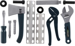 Deze plastic gereedschapsset is ideaal voor alle kleine reparatieliefhebbers. Het bevat ongeveer 13 stuks gereedschap, waaronder een sleutel, tang en andere uitrusting, waarmee kinderen speels hun ouders kunnen nabootsen in doe-het-zelf activiteiten. Het speelgoed ontwikkelt niet alleen op een leuke manier technische inzichten, maar oefent ook hun vaardigheden en motoriek.