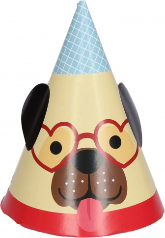 Vrolijke feesthoedjes met hondenthema geven elke viering extra flair. De set bevat 6 stuks hoedjes met een hoogte van 15 cm, ideaal voor kinderverjaardagen en themafeesten.