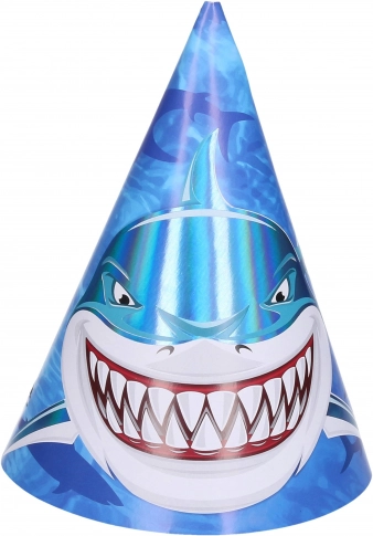 Feesthoedjes met haai, 15 cm, 6 stuks