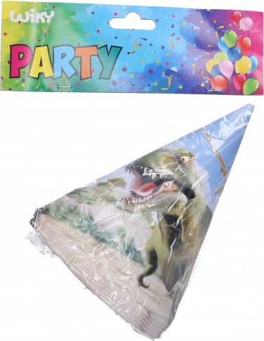 Vrolijk een kinderfeestje op met stijlvolle partyhoedjes met DINO-motief. Praktische set van 6 stuks met een hoogte van 15 cm, perfect voor verjaardagen, themafeestjes en schoolactiviteiten.