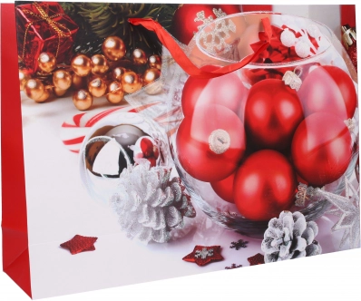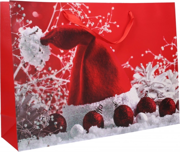Deze ruime kerstcadeautas van stevig papier is een uitstekende keuze voor een elegante verpakking van cadeaus. Dankzij de verbrede bodem en zijkanten is er gemakkelijk plaats voor grotere of volumineuzere items, terwijl de stevige hengsels zorgen voor comfortabel en veilig dragen.
