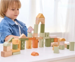 50 zorgvuldig vervaardigde houten blokken in zachte tinten met diermotieven stimuleren creatief spel en STEM-basisvaardigheden. Het gladde oppervlak en de hoogwaardige afwerking zorgen voor duurzaamheid en veilig spelen.