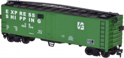 De set bevat een gesloten wagen “Express Shipping” en een open platte wagen met leuning – ideaal voor het creëren van realistische goederenscènes.