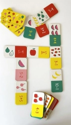 Ontdek een leuk en leerzaam spel dat rekenen en logisch denken combineert in de vorm van domino. Kinderen leggen kaartjes met de juiste uitkomsten aan bij afbeeldingen met het overeenkomende aantal stuks fruit, waardoor ze spelenderwijs hun wiskundige vaardigheden, snelheid en concentratie versterken. Te spelen alleen of met meerdere spelers, zonder potlood en papier.