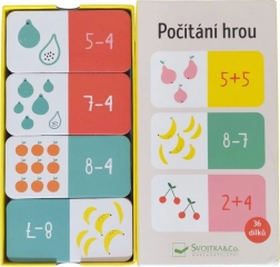 Dit slimme en leuke spel van Svojtka & Co. ontwikkelt bij kinderen essentiële vaardigheden: van basisrekenkunde tot logisch en strategisch denken. Het dominoprincipe motiveert kinderen om de juiste paren te zoeken – ze koppelen een som aan de overeenkomende hoeveelheid fruit.