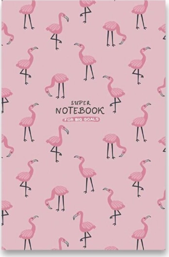 Notitieboek A6 met een stijlvol motief van een Hond en een Flamingo is ideaal voor school en persoonlijk gebruik. Dit schrift biedt een uniek design en kwaliteit dankzij de genaaide binding en stevige kaft.