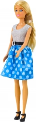 Pop Anlily is een elegante pop die betovert met haar uiterlijk en rijke details. Ze is uitgerust met een stijlvolle zilveren top, een blauwe rok met witte stippen en wordt aangevuld met een zwarte riem en schoenen. Deze combinatie stelt kinderen in staat te experimenteren en unieke modieuze stijlen te creëren.