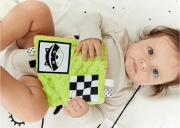 Opvallende zwart-witpatronen aangevuld met verzadigde kleuren helpen de baby beter te focussen en ondersteunen het visuele waarnemen vanaf de geboorte.