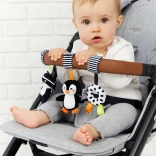 Het speeltje kan gemakkelijk worden bevestigd aan verschillende oppervlakken zoals een kinderwagen, wieg of autostoeltje, waardoor het een ideale metgezel is voor zowel onderweg als thuis.