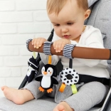 Hangend speeltje GaGaGu met contrasterende kleuren en patronen trekt de aandacht van kinderogen en pluche elementen zoals aap, panda en bal ondersteunen de ontwikkeling van de fijne motoriek.
