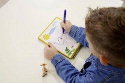Vul de pen met water, strijk over de pagina en de afbeeldingen komen tot leven in kleur. Na het drogen (ongeveer 10 minuten) verdwijnen ze en kun je opnieuw beginnen.
