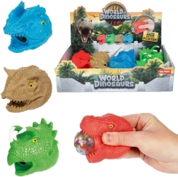 Dinosauruskop knijp antistress 8 cm 4 soorten 12 stuks in doos