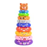 De kleurrijke pyramide met ringen verbindt educatie en creativiteit. Het bestaat uit ringen van verschillende maten en kleuren, die kinderen stapelen tot een aantrekkelijke pyramide. Bovenop staat een schattige tijger die charme toevoegt en stimuleert tot spel.