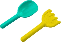 Twee plastic vormpjes (schelp en eendje) stimuleren de verbeelding en helpen mooie zandfiguren te maken. De hele set is gemaakt van hoogwaardig, kleurrijk en duurzaam plastic dat bestand is tegen zon en water en gemakkelijk schoon te maken is. Geschikt voor de zandbak, het strand en de tuin.