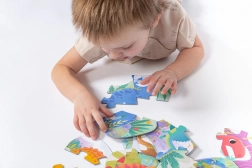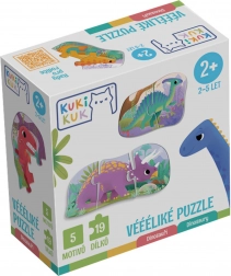 Elke dinosaurus vormt een aparte puzzel met een vereenvoudigde vorm. Kinderen oefenen het leggen en ontdekken tegelijk de wereld van prehistorische wezens.