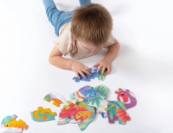 Ontdek de magie van puzzelen met kleurrijke dinosaurussen die kinderen meteen aanspreken. Grote, stevige stukjes zijn aangepast aan kleine handjes en slimme sluitvormen leiden kinderen naar de juiste oplossing. Elke dinosaurus is een aparte puzzel met een vereenvoudigde vorm voor gemakkelijk begrip.