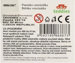 De dierenarts pop heeft een stevig lichaam en is ongeveer 11 cm lang. Kinderen kunnen in de rol van dierenarts kruipen met de set die alle nodige accessoires voor dierenverzorging bevat 2; alles wat ze nodig hebben om hun pluchen patiënten te onderzoeken en te genezen.