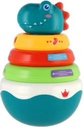 Deze speelse stapelpiramide met dinosaurus-thema combineert plezier en leren. De afgeronde basis wiebelt in alle richtingen wanneer je ertegen tikt en activeert een aangenaam belgeluid, dat het gehoor op natuurlijke wijze stimuleert. Kinderen oefenen hun greep, het sorteren van ringen op grootte en het herkennen van kleuren – ideaal voor de eerste ontdekkingen van de wereld.