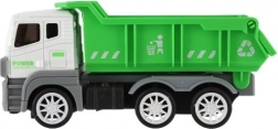 Thematische prints en functionele elementen (bijv. laadbak, tank) leren kinderen over stadsreinheid, recycling en bouwplaatswerk.