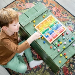 Deze houten tafel met tafels van vermenigvuldiging is een uitstekende hulpmiddel voor de ontwikkeling van logisch denken en fijne motoriek. De kleurrijke blokjes met opgaven stimuleren kinderen om al spelenderwijs te ontdekken en te leren, terwijl directe controle van het antwoord zelfstandigheid en zelfvertrouwen bevordert.