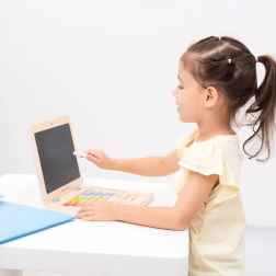 De houten laptop van New Classic Toys is een ideale educatieve speelset voor kinderen vanaf 3 jaar. Zonder batterijen ondersteunt deze laptop creativiteit en leren dankzij kleurrijke magnetische toetsen en een zwart schoolbord om op te tekenen.