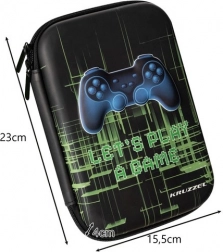 Stijlvolle schooletui met 3D gamepad-motief biedt een duurzame EVA-constructie, een dubbele rits voor comfortabel openen en een doordachte indeling binnenin. Je vindt er 2 netvakken, 6 lussen voor schrijfwaren en een ruime compartiment waar ook een tablet tot 8,5″ in past. Het gamerdesign met de tekst “LET’S PLAY A GAME” zal alle gameliefhebbers aanspreken. (Schrijfbenodigdheden niet inbegrepen.)