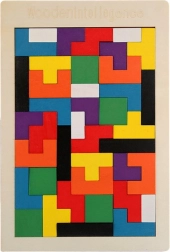 De houten logische puzzel biedt slimme pret voor zowel jongere als oudere kinderen. De taak is om 40 stevige houten stukjes van verschillende vormen en kleuren zo te leggen dat ze een compact rechthoekig vlak vormen. Het spel ondersteunt op natuurlijke wijze vormanalyse, ruimtelijk inzicht en probleemoplossing.
