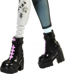 Maak kennis met de iconische MONSTER HIGH-studente – Frankie Stein. Deze pop valt op door een indrukwekkende mix van punk en techno: denimjack, shorts, opvallende oorbellen in de vorm van bliksemschichten en zwarte enkelboots met roze veters. Dankzij de gewrichten om te poseren creëer je moeiteloos coole scènes en verhalen.